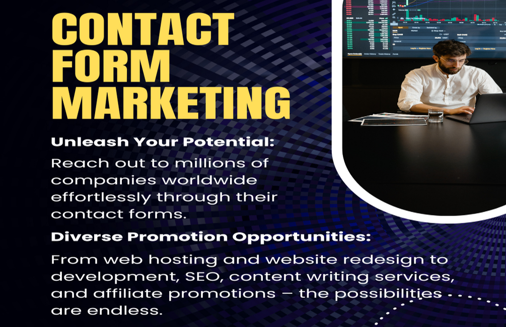 Connect with millions of companies worldwide by sending messages through their contact forms. Simply fill out the "contact us" or "get in touch" forms.